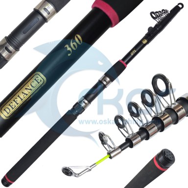 چوب تلسکوپی هفت تکه OSP مدل 360 DEFIANCE، از جنس فایبرگلاس که بسیار فوق العاده سبک و با دوام است ساخته شده است. این محصول دارای بدنه ای جمع و جور و سبک است که به راحتی باز و بسته می شود و ماهیگیری را برای ماهیگیر لذت بخش تر می کند. چوب ماهیگیری تلسکوپی فایبرگلاس برند OSP بسیار سبک و محکم است و برای موقعیت هایی که ماهیگیری سخت و ماهی سنگین است بسیار مناسب است. دسته این چوب ماهیگیری دارای طراحی ارگونومیک بوده و در انتهای چوب یک درپوش فلزی برای محافظت از چوب و راحتی ماهیگیر قرار گرفته است.